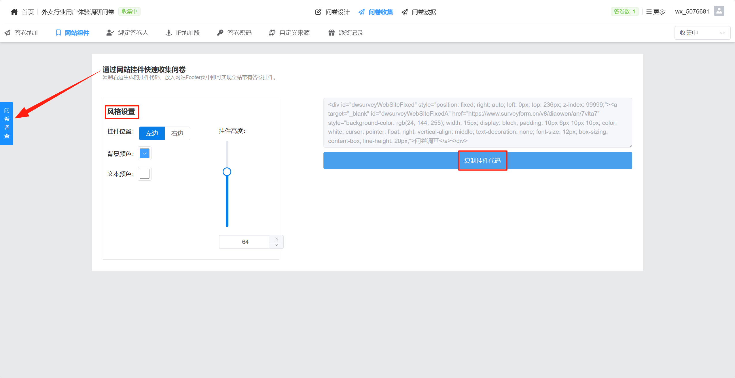 网站组件是一种可嵌入到网页中的答卷挂件模块,通过在企业官网、产品页、系统后台等页面中嵌入挂件代码,实现在网页任意位置(如右下角)展示问卷入口,用户可点击弹出问卷并直接填写。