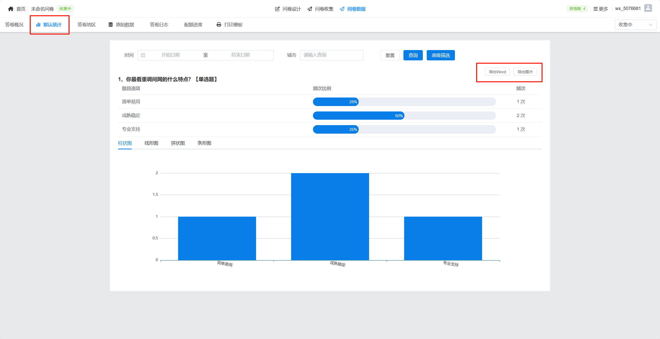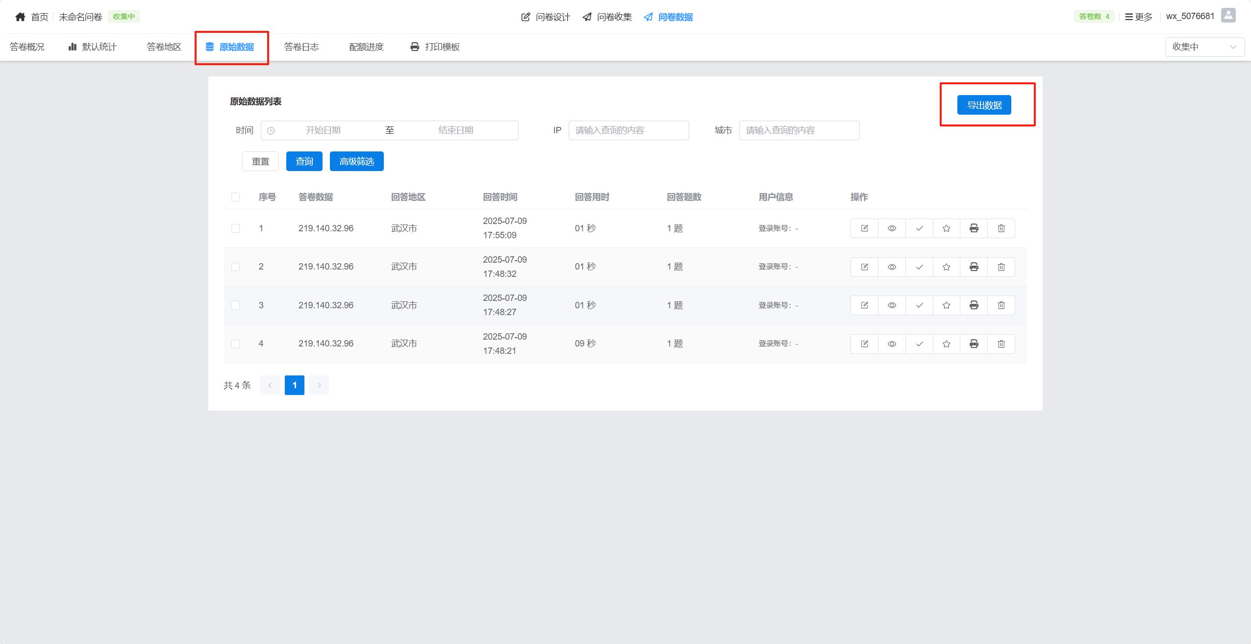 问卷所收集的数据实时更新到“问卷数据”板块。在这里,您可以: